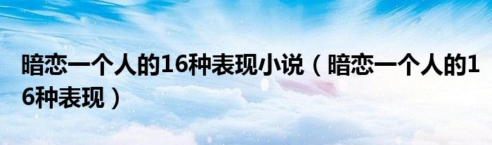 关于暗恋一个人的16种表现小说,暗恋一个人的16种表现这个很多人还不知道,今天菲菲来为大家解答以上的问题,现在让我们一起来看看吧!