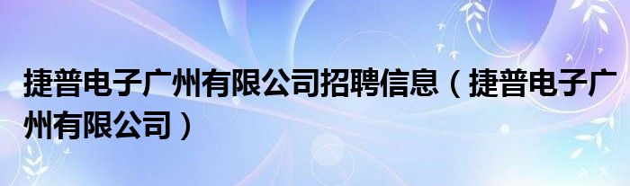 捷普电子广州有限公司招聘信息(捷普电子广州有限公司)
