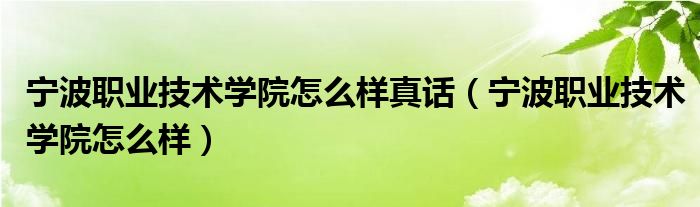 关于宁波职业技术学院怎么样真话,宁波职业技术学院怎么样这个很多人还不知道,今天菲菲来为大家解答以上的问题,现在让我们一起来看看吧!