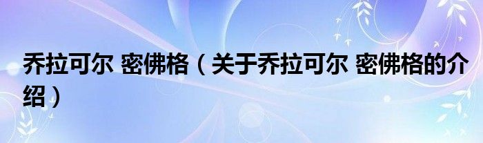 乔拉可尔 密佛格(关于乔拉可尔 密佛格的介绍)