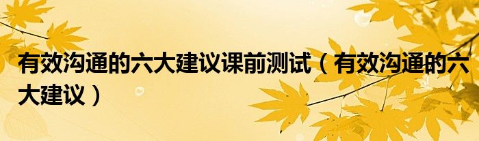 关于有效沟通的六大建议课前测试,有效沟通的六大建议这个很多人还不知道,今天菲菲来为大家解答以上的问题,现在让我们一起来看看吧!