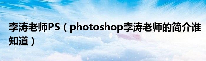 关于李涛老师PS,photoshop李涛老师的简介谁知道这个很多人还不知道,今天菲菲来为大家解答以上的问题,现在让我们一起来看看吧!