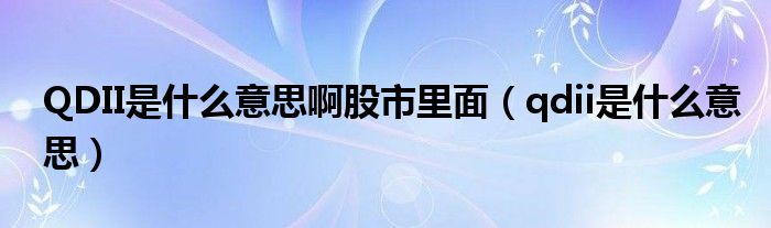 关于QDII是什么意思啊股市里面,qdii是什么意思这个很多人还不知道,今天菲菲来为大家解答以上的问题,现在让我们一起来看看吧!