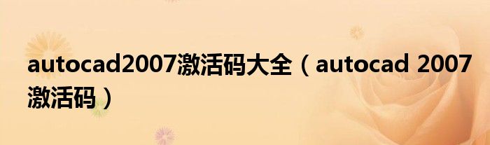 关于autocad2007激活码大全,autocad 2007激活码这个很多人还不知道,今天菲菲来为大家解答以上的问题,现在让我们一起来看看吧!