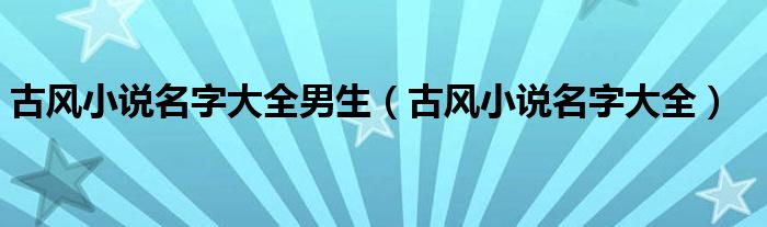 古风小说名字大全男生(古风小说名字大全)