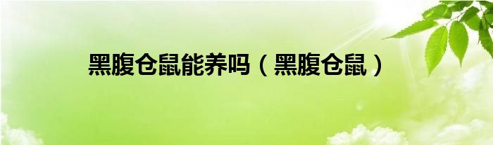 黑腹仓鼠能养吗(黑腹仓鼠)
