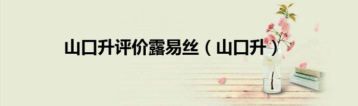 关于山口升评价露易丝,山口升这个很多人还不知道,今天菲菲来为大家解答以上的问题,现在让我们一起来看看吧!