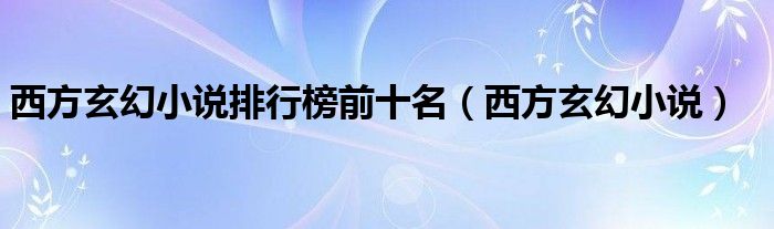 西方玄幻小说排行榜前十名(西方玄幻小说)