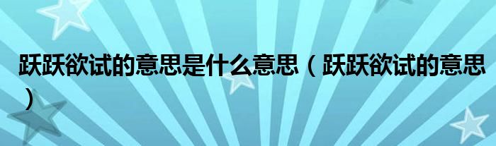 关于跃跃欲试的意思是什么意思,跃跃欲试的意思这个很多人还不知道,今天菲菲来为大家解答以上的问题,现在让我们一起来看看吧!