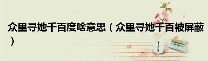 关于众里寻她千百度啥意思,众里寻她千百被屏蔽这个很多人还不知道,今天菲菲来为大家解答以上的问题,现在让我们一起来看看吧!