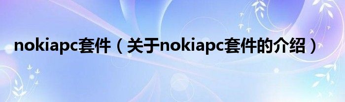 nokiapc套件(关于nokiapc套件的介绍)