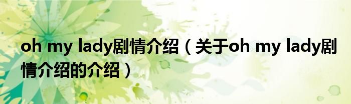 大家好,今天小乐来为大家解答以上的问题。oh my lady剧情介绍,关于oh my lady剧情介绍的介绍很多人还不知道,现在让我们一起来看看吧!