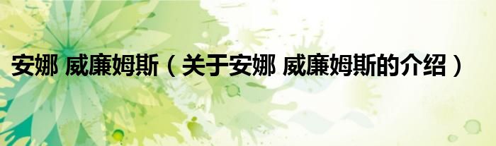 安娜 威廉姆斯(关于安娜 威廉姆斯的介绍)