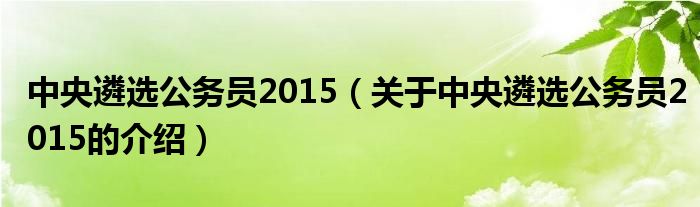中央遴选公务员2015(关于中央遴选公务员2015的介绍)