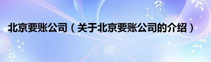 大家好,小都来为大家解答以上的问题。北京要账公司,关于北京要账公司的介绍很多人还不知道,现在让我们一起来看看吧!