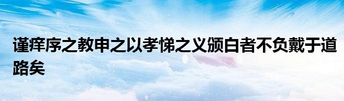 关于谨痒序之教申之以孝悌之义颁白者不负戴于道路矣这个很多人还不知道,今天菲菲来为大家解答以上的问题,现在让我们一起来看看吧!