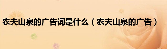 关于农夫山泉的广告词是什么,农夫山泉的广告这个很多人还不知道,今天菲菲来为大家解答以上的问题,现在让我们一起来看看吧!