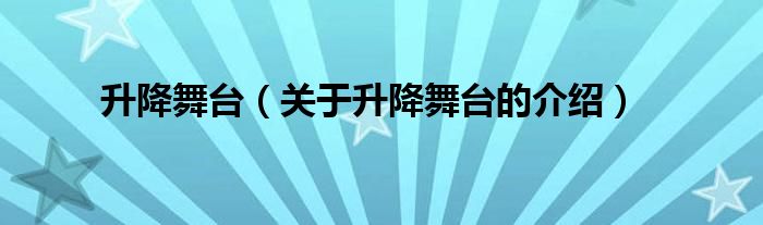 大家好,小都来为大家解答以上的问题。升降舞台,关于升降舞台的介绍很多人还不知道,现在让我们一起来看看吧!