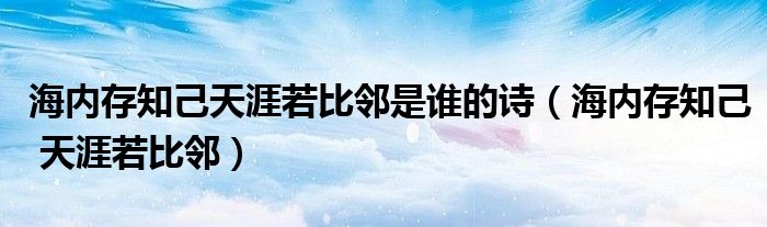 关于海内存知己天涯若比邻是谁的诗,海内存知己 天涯若比邻这个很多人还不知道,今天菲菲来为大家解答以上的问题,现在让我们一起来看看吧!