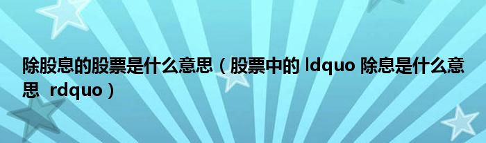 关于除股息的股票是什么意思,股票中的 ldquo 除息是什么意思 rdquo这个很多人还不知道,今天菲菲来为大家解答以上的问题,现在让我们一起来看看吧!