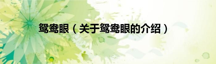 大家好,小都来为大家解答以上的问题。鸳鸯眼,关于鸳鸯眼的介绍很多人还不知道,现在让我们一起来看看吧!