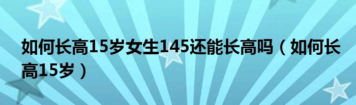 如何长高15岁女生145还能长高吗(如何长高15岁)