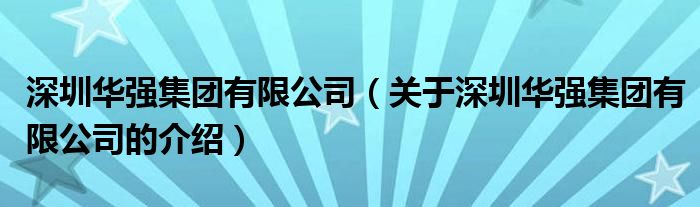 大家好,小都来为大家解答以上的问题。深圳华强集团有限公司,关于深圳华强集团有限公司的介绍很多人还不知道,现在让我们一起来看看吧!