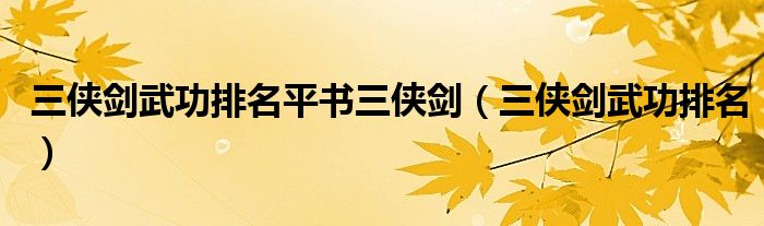 关于三侠剑武功排名平书三侠剑,三侠剑武功排名这个很多人还不知道,今天菲菲来为大家解答以上的问题,现在让我们一起来看看吧!