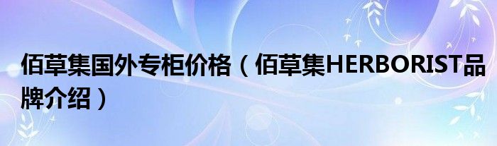 大家好,小源来为大家解答以上问题。佰草集国外专柜价格,佰草集HERBORIST品牌介绍很多人还不知道,现在让我们一起来看看吧!