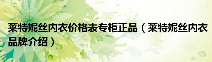 大家好,小源来为大家解答以上问题。莱特妮丝内衣价格表专柜正品,莱特妮丝内衣品牌介绍很多人还不知道,现在让我们一起来看看吧!