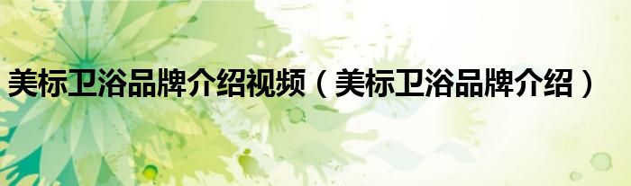 美标卫浴品牌介绍视频(美标卫浴品牌介绍)