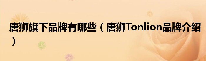 大家好,小源来为大家解答以上问题。唐狮旗下品牌有哪些,唐狮Tonlion品牌介绍很多人还不知道,现在让我们一起来看看吧!