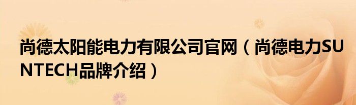 大家好,小源来为大家解答以上问题。尚德太阳能电力有限公司官网,尚德电力SUNTECH品牌介绍很多人还不知道,现在让我们一起来看看吧!
