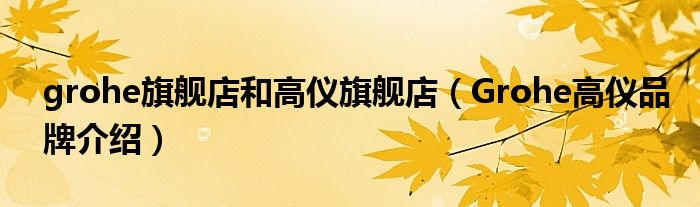 大家好,小源来为大家解答以上问题。grohe旗舰店和高仪旗舰店,Grohe高仪品牌介绍很多人还不知道,现在让我们一起来看看吧!