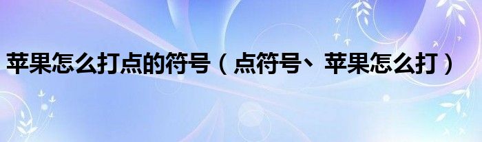 大家好,小晋来为大家解答以下问题,关于苹果怎么打点的符号,点符号丶苹果怎么打很多人还不知道,今天让我们一起来看看吧!
