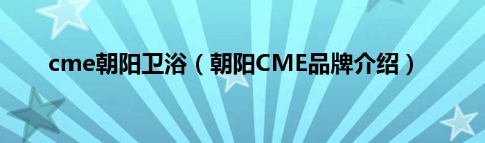 大家好,小源来为大家解答以上问题。cme朝阳卫浴,朝阳CME品牌介绍很多人还不知道,现在让我们一起来看看吧!
