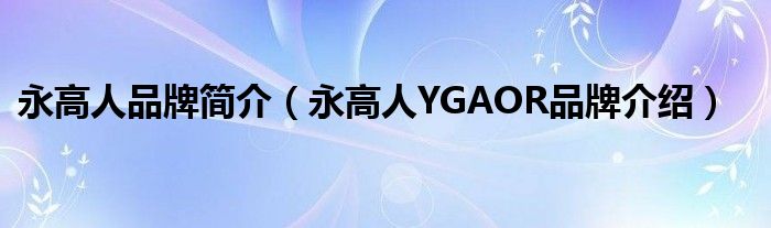 大家好,小源来为大家解答以上问题。永高人品牌简介,永高人YGAOR品牌介绍很多人还不知道,现在让我们一起来看看吧!