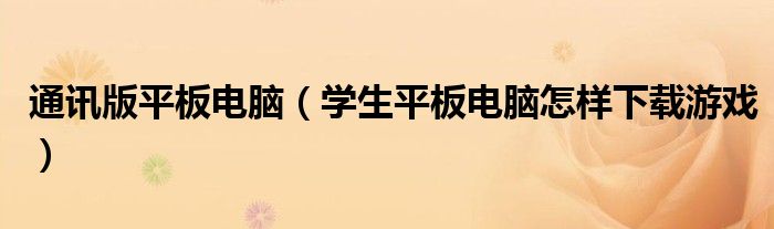 通讯版平板电脑(学生平板电脑怎样下载游戏)