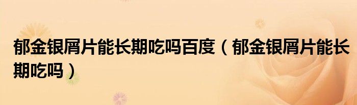 大家好,linda来为大家解答以上的问题。郁金银屑片能长期吃吗百度,郁金银屑片能长期吃吗很多人还不知道,现在让我们一起来看看吧!