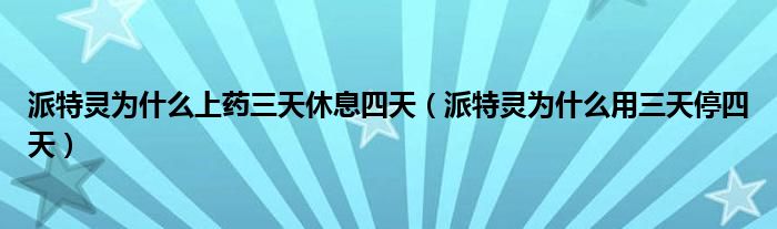 派特灵为什么上药三天休息四天(派特灵为什么用三天停四天)