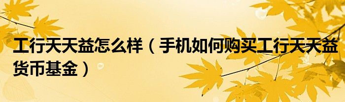 工行天天益怎么样(手机如何购买工行天天益货币基金)