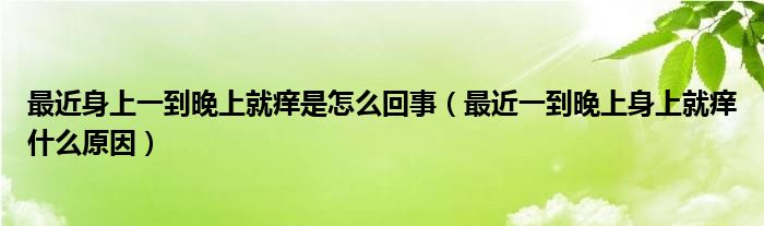大家好,linda来为大家解答以上的问题。最近身上一到晚上就痒是怎么回事,最近一到晚上身上就痒什么原因很多人还不知道,现在让我们一起来看看吧!