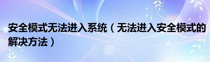 大家好,今天小悦来为大家解答以上问题。安全模式无法进入系统,无法进入安全模式的解决方法很多人还不知道,现在让我们一起来看看吧!