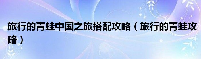 旅行的青蛙中国之旅搭配攻略(旅行的青蛙攻略)