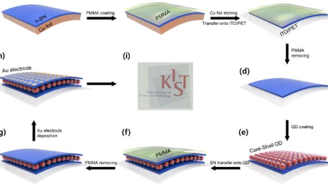 在韩国科学技术研究院先进复合材料研究所(KIST,Yoon Seok-Jin 院长),Dong-Ick Son 博士领导的研究团队宣布开发出一种基于异构的透明和柔性存储设备。低维超薄纳米结构。为此,形成了单层零维(0D)量子点,并将其夹在两个绝缘的二维六方氮化硼(h-BN)超薄纳米材料结构之间。