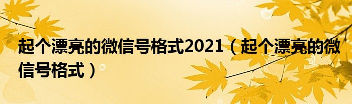大家好,雨雨来为大家解答以上问题,起个漂亮的微信号格式2021,起个漂亮的微信号格式很多人还不知道,现在让我们一起来看看吧!