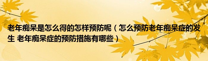 大家好,linda来为大家解答以上的问题。老年痴呆是怎么得的怎样预防呢,怎么预防老年痴呆症的发生 老年痴呆症的预防措施有哪些很多人还不知道,现在让我们一起来看看吧!