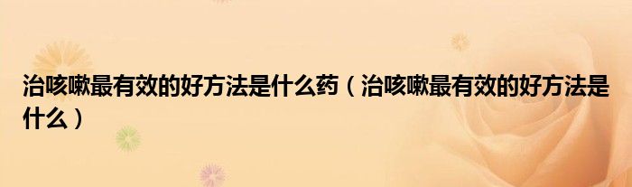 治咳嗽最有效的好方法是什么药(治咳嗽最有效的好方法是什么)