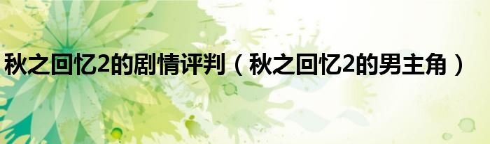 大家好,雨雨来为大家解答以上问题,秋之回忆2的剧情评判,秋之回忆2的男主角很多人还不知道,现在让我们一起来看看吧!