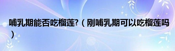 大家好,linda来为大家解答以上的问题。哺乳期能否吃榴莲?,刚哺乳期可以吃榴莲吗很多人还不知道,现在让我们一起来看看吧!